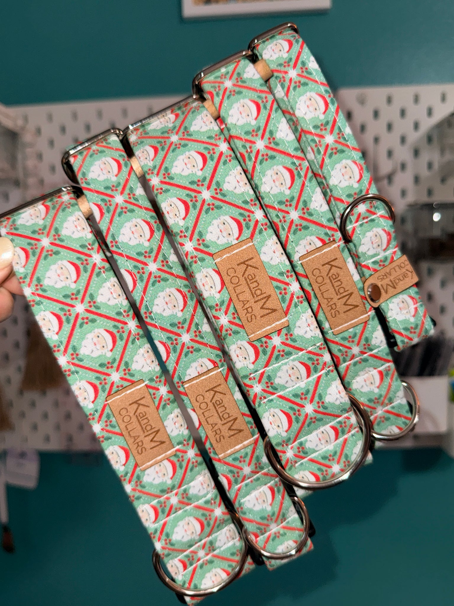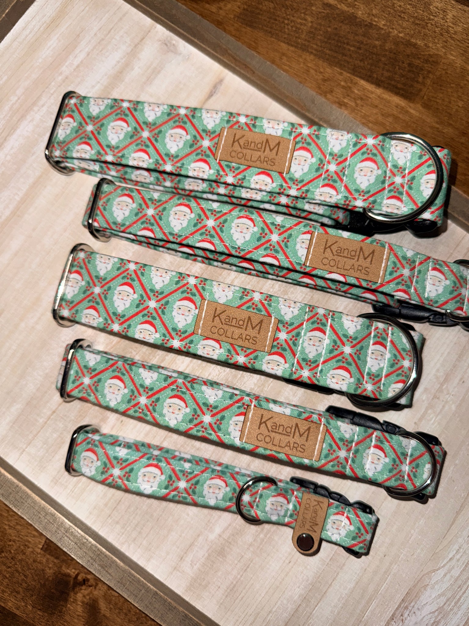 Green and Red Mini Santa Clause Christmas Dog Collar